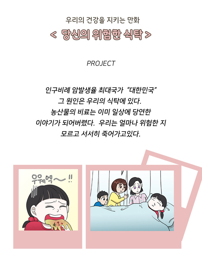 '잘못된 음식을 먹은 몸은 반드시 위험하다.' 농약으로 키운 농산물이 당연시되고, 우리의 식탁은 위협받고 있지만 아무도 모른다. 우리의 식탁, 우리 건강을 지키는 사람들의 이야기.
