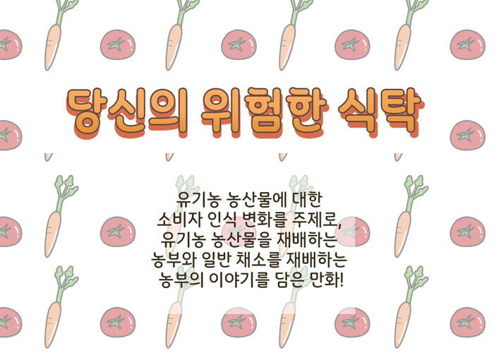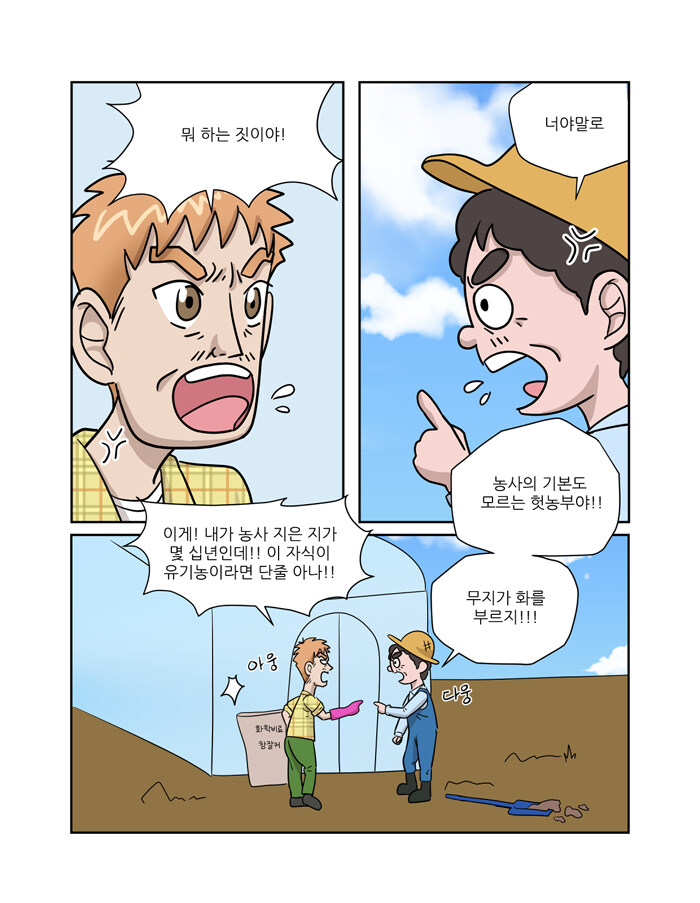 Episode 1 유기농을 하지 않는 이유 _10p Episode 2 동물복지 계란_18p Episode 3 그것들은 어떻게 생산 되는가_28p Episode 4 잘 사는 자와 못 사는 자_38p Episode 5 느리지만 확실하게 맞이하게 되는 문제점_48p Episode 6 암 발생 국가 1위 - 대한민국_64p Episode 7 근본+바탕+환경=결과_72p Episode 8 수박농사_82p Episode 9 이윤 우선 유통 & 생산자와 소비자의 무지_94p Episode 10 양액재배? 토경재배?_104p Episode 11 우리는 무엇을 먹어야 하나?_114P